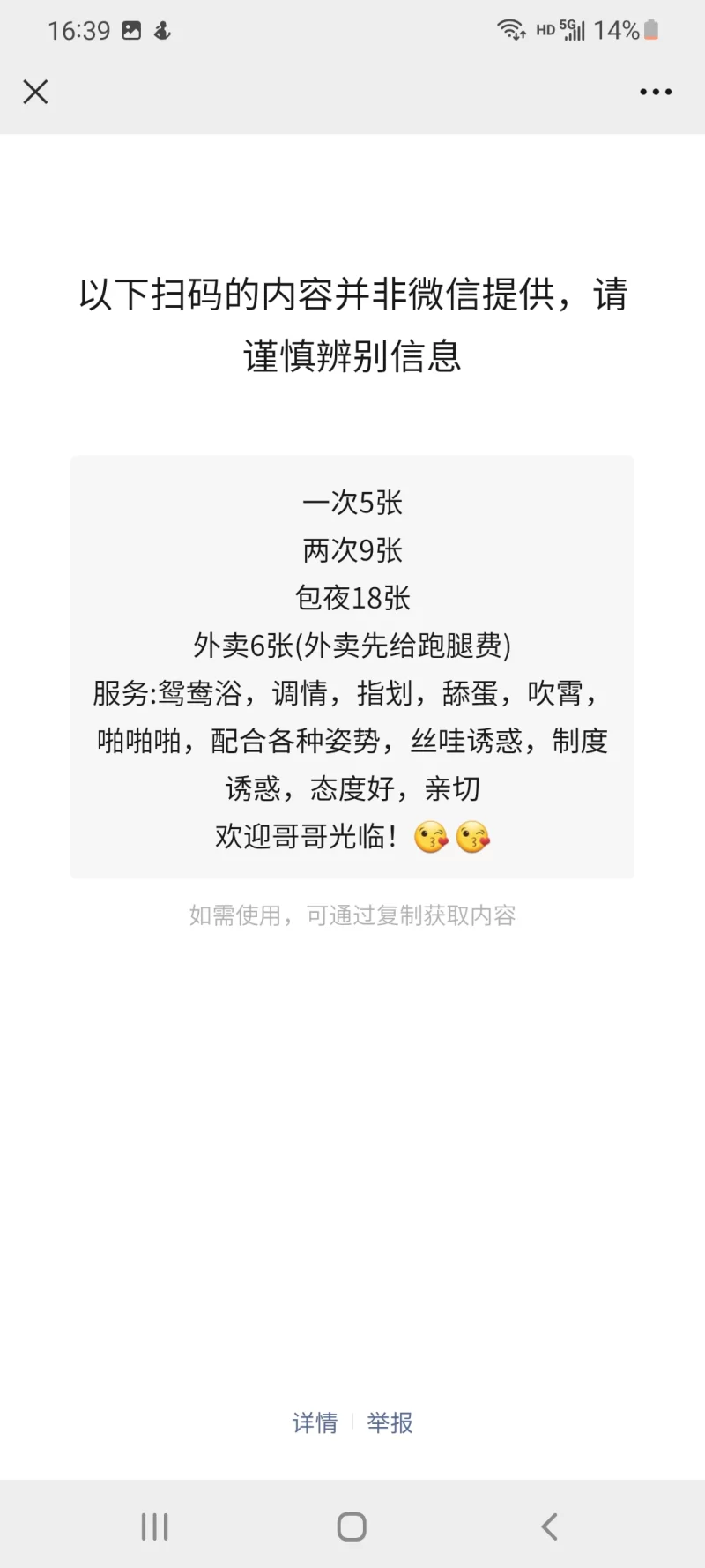 只是一个中介,随便给安排一个,谈好的全套都没有,安排的还很机车,做几分钟做不出来就吹你快点,再过几分钟就不让做了,直接用手,谈好的1小时,去到结束20分钟不到就结束,微信也是个中介,天天发假照片骗人,体验感极差!