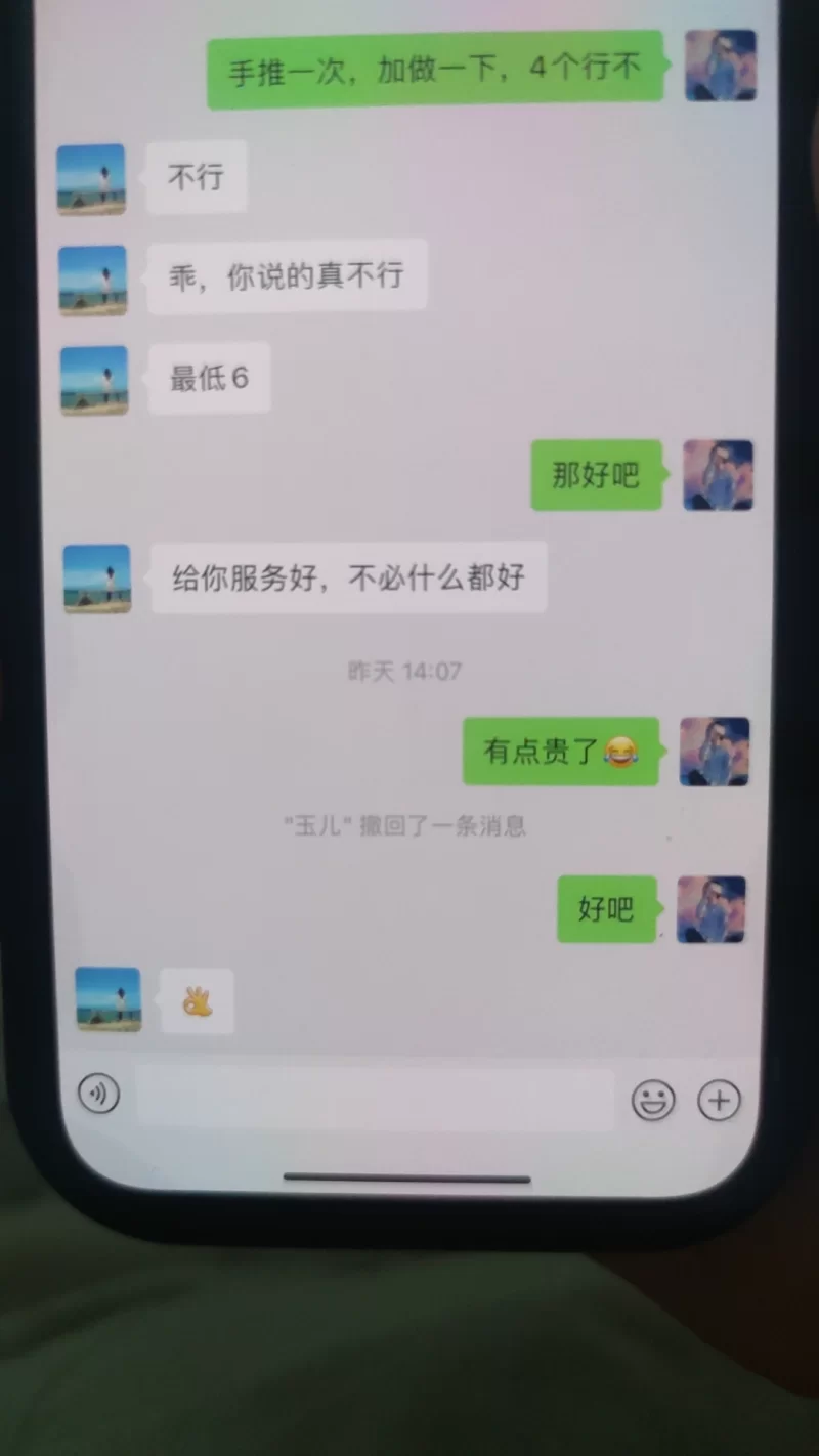 进店按摩期间介绍大活,讲讲价格可以600手推一次,爱一次