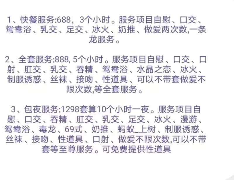 找的朋友要的这个妹妹qq。一-进门,小姐姐直接抱着我,让我摸她的胸,然后她就帮我把裤子脱了舔我的小弟弟这种待遇真的太爽了,这个小姐姐也是刚来广州不久。各种姿势都可以尝试。中途各种要求也可以满足,怎么操都可以,颜值超级高,是按时间计算,中途射了也会三个小时时间做满,我点的是688三个小时的。我是来出差的,妹子叫我帮忙给她宣传一下。等我下次再来,-定要再来体验一把,各位狼友真的很值得推荐。价格也很良心,颜值也很