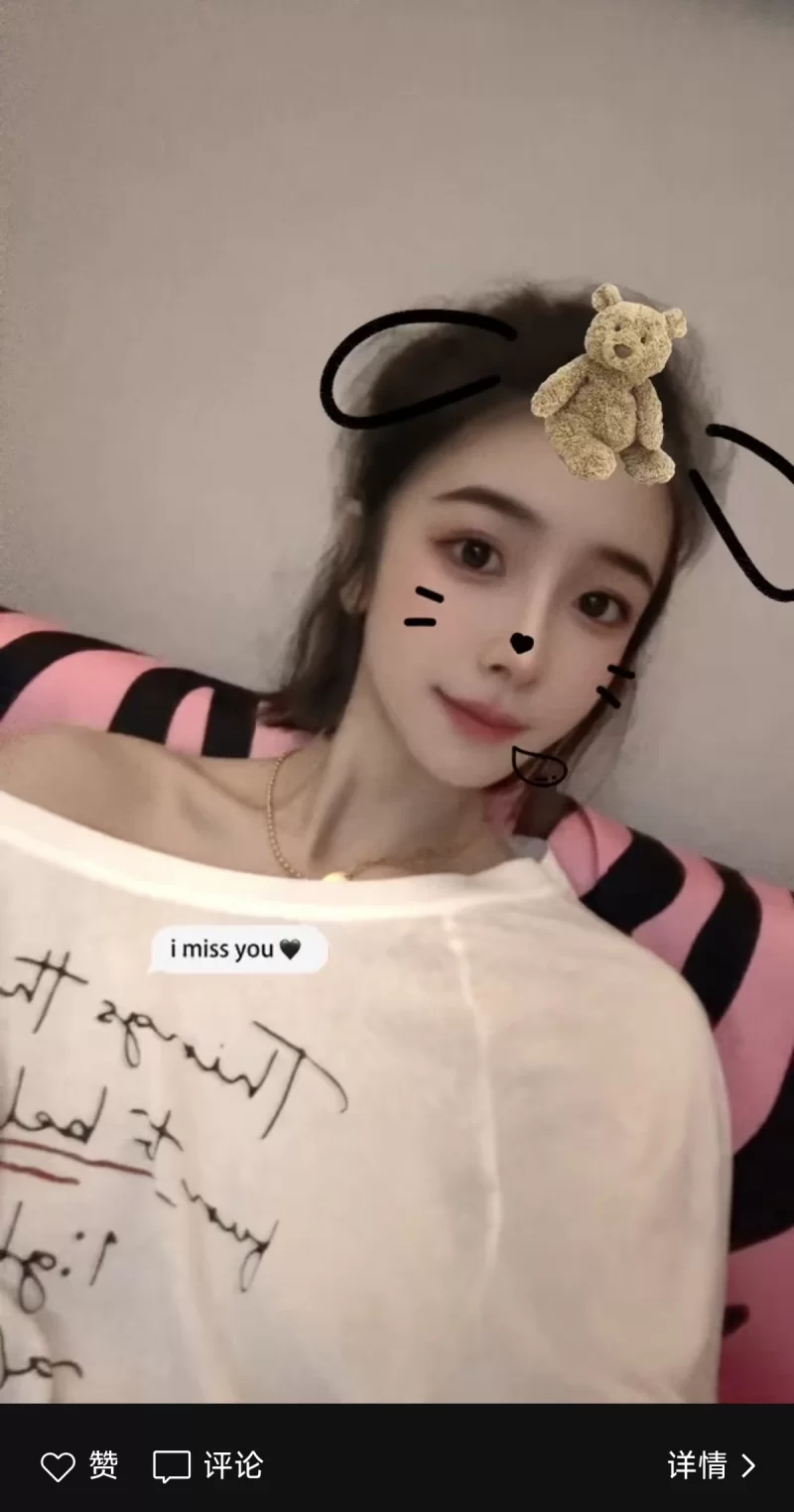 小姐姐长得很美,很纤细,眼睛大,五官端正,皮肤紧致,白。衣品好,穿搭不错,很青春的感觉。一开始进门我还以为是老板或者前台,只做接待的,没想到是技师,因为形象气质都太佳了!就是胸有点小,一只手可以握满,这个看个人喜好,反正我不在意。