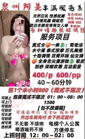 今天算是捡到宝了,阿美老师真的是技术性顶尖教授,要是注重服务的一定要来体验一下,简单讲一下流程,进门后跟老师简单聊了一下,洗澡洗的很细致,方方面面俱到,揉搓中带手法,一阵一阵的快感,浴毕,入房,老师开始上才艺了,一顿操作猛如虎,全身的神经跟着老师的节奏在跳,欲仙欲死,期间还上了个从没体验过的黑科技,特别是乳交,鸡巴被阿美的大胸包裹着,有一种别与骚逼的幸福感。人生第一次被开苞,最后属于是怒放了,期间老师完全没有催熟,情绪自然而然就到了