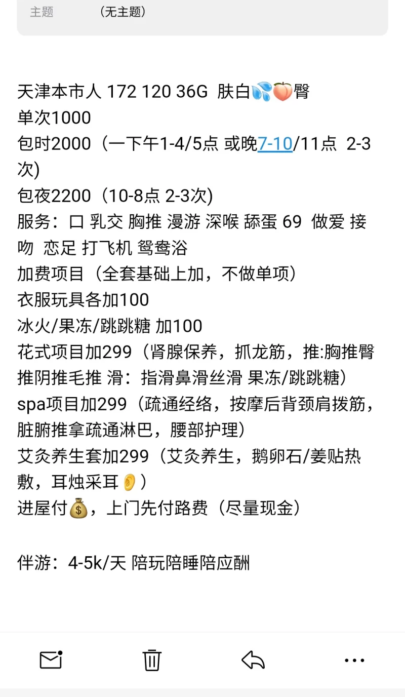 发邮件,跟她联系都是发邮件的,液体加500检查卫生催情药500录视频200环保肛交1000,这个女的认钱不认人